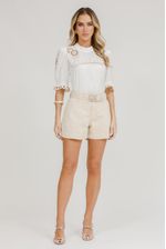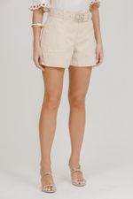 Bermuda Feminina Sarja Bela Com Cinto - Bege Claro.