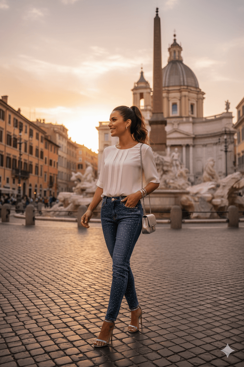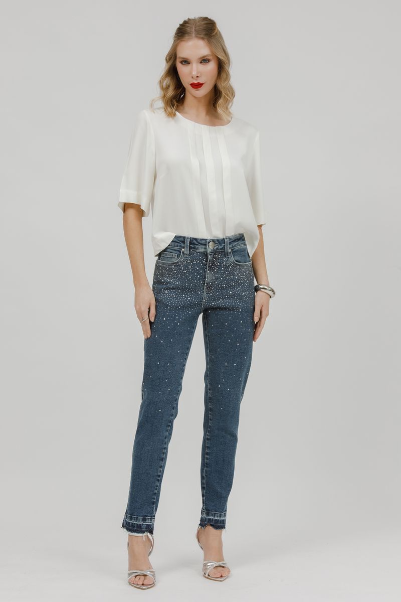 Blusa cropped de crepe elegante, com mangas sofisticadas e delicadas pregas frontais que trazem movimento e charme. O fechamento com botão na gola, na parte de trás, adiciona um toque refinado, perfeito para looks modernos e cheios de personalidade.