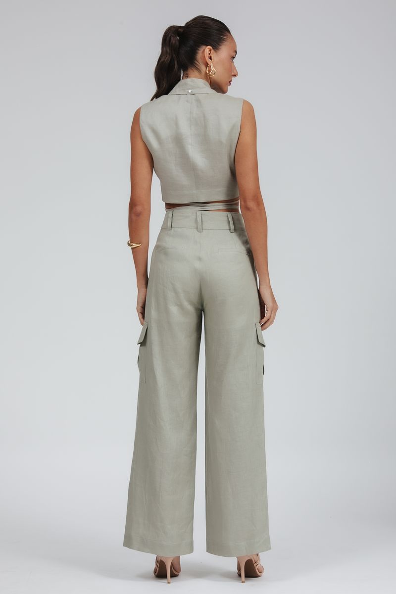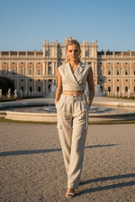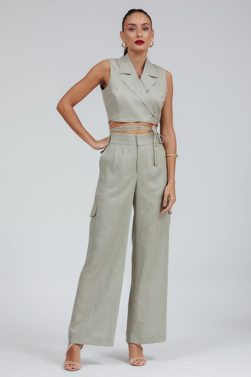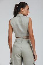 OUTLETFEMININOBlusa Cropped Linho Gola Blazer Bella Falconi