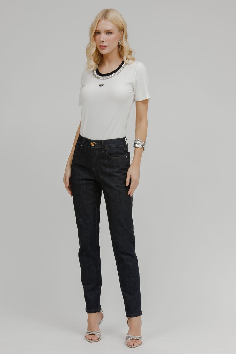 A Blusa de Malha Tricot combina conforto e sofisticação em uma peça atemporal. Seu diferencial está no delicado bordado de pérolas e pedras no decote, que acrescenta brilho e charme ao visual. Versátil e elegante, é ideal para compor produções modernas com um toque refinado.