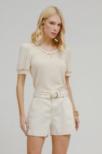Blusa Malha Tricot Com Pedrarias.