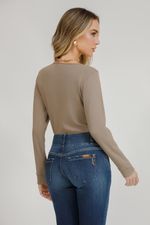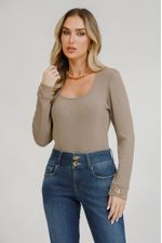 Blusa de malha manga longa com detalhe em metal no punho. Sofisticação discreta que eleva o visual com um toque contemporâneo.