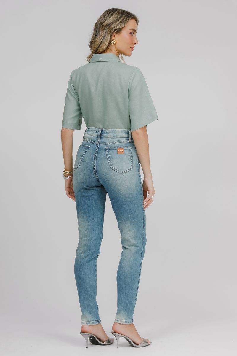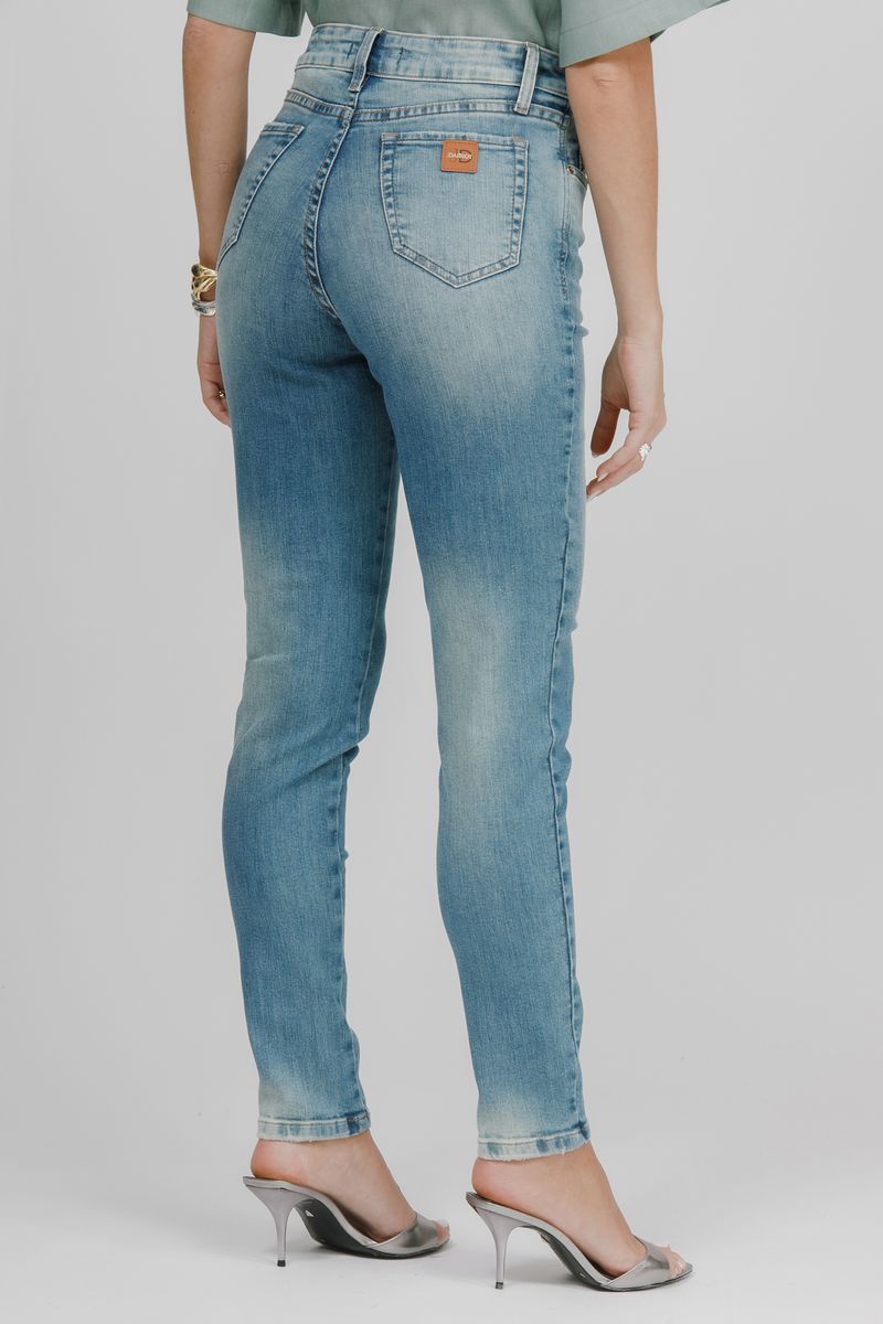 Calça skinny e caracterizada por ser super ajustada ao corpo, desde a cintura até os tornozelos.