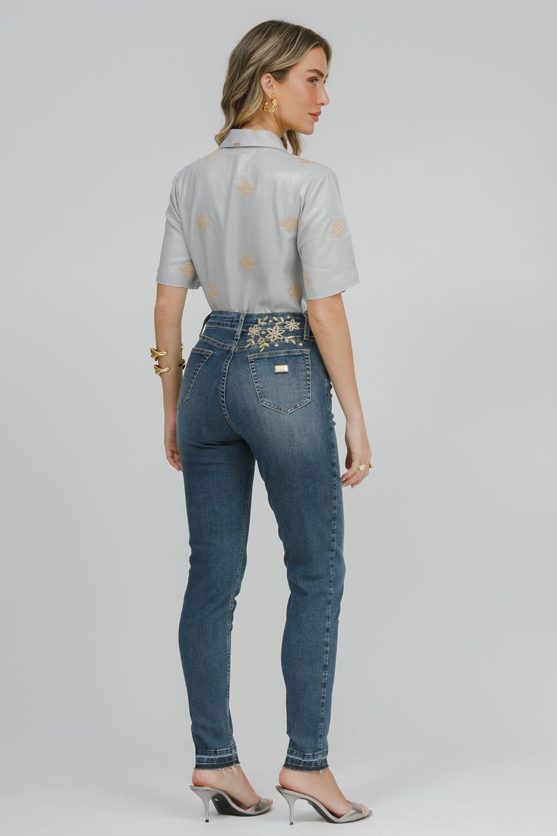 Calça skinny e caracterizada por ser super ajustada ao corpo, desde a cintura até os tornozelos.