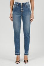 A calça Luciana une modernidade e conforto com sua modelagem skinny ajustada da cintura aos tornozelos. Com cós alto acima do umbigo e entrepernas de 75cm, valoriza a silhueta com um toque atual. O diferencial fica por conta da barra desfiada e dos botões frontais no lugar do zíper um detalhe que adiciona estilo ao visual com charme sutil.