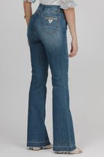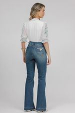Calça bootcut tem a modelagem ajustada na altura das coxas e abertura sútil abaixo dos joelhos.