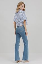 A Calça Jeans Sofia Bootcut combina elegância e conforto em uma modelagem que valoriza o corpo. Com 86cm de entrepernas, cós pouco abaixo do umbigo, justa nas coxas e com joelhos levemente afunilados que se ampliam a partir daí, garante um caimento impecável. O destaque fica por conta do delicado laço de metal aplicado no bolso relógio, detalhe que traz charme e sofisticação à peça.