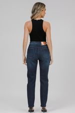 Modelagem com mais conforto no quadril e coxas, cintura alta, com folga nas pernas.