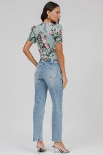 Modelagem com mais conforto no quadril e coxas, cintura alta, com folga nas pernas.