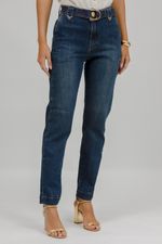 Calça feminina Valentina com cós alto, modelagem folgada e barra levemente afunilada. Possui 75cm de entrepernas e acompanha cinto em jeans com fivela de metal, garantindo um toque moderno e elegante.