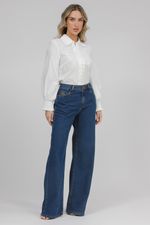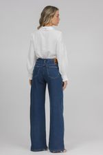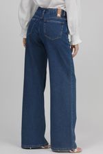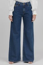Cós acima do umbigo, ela tem um caimento mais largo que segue até a barra. Combina características de uma calça reta com uma pantalona.