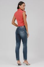 Calça skinny e caracterizada por ser ajustada ao corpo, desde a cintura até os tornozelos.
