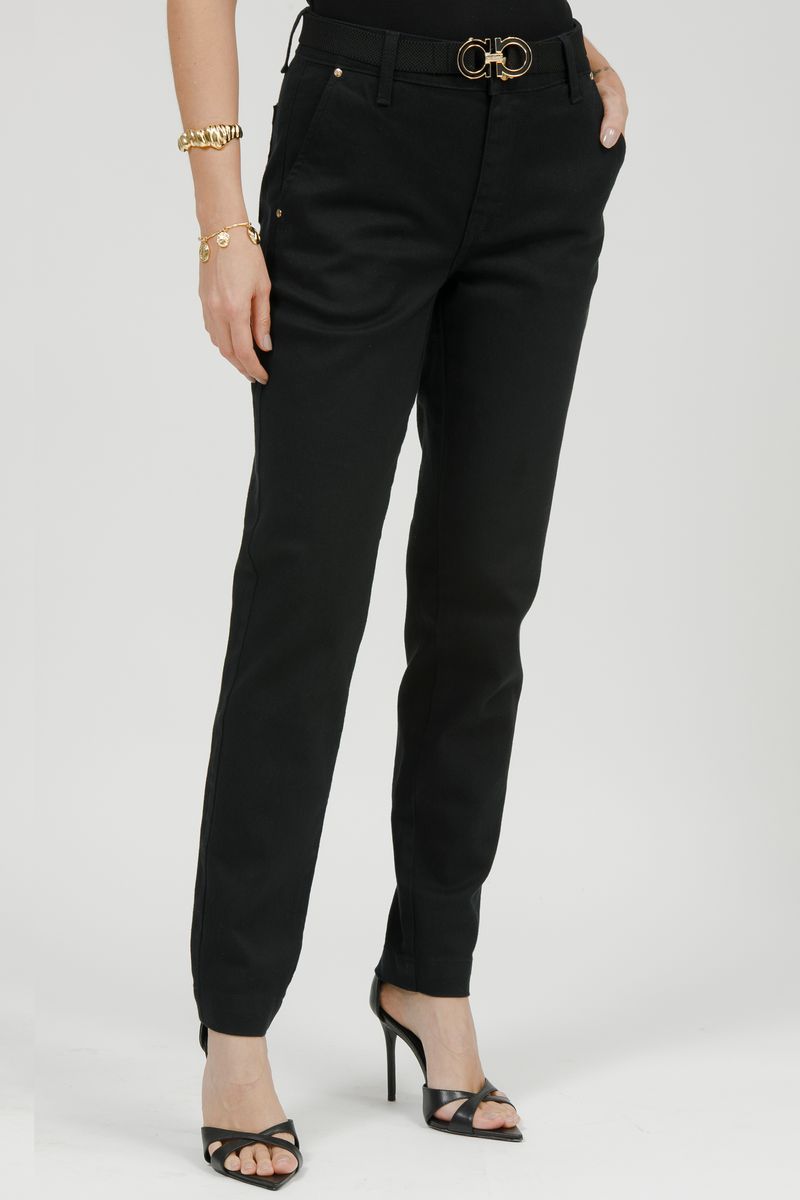 Calça skinny e caracterizada por ser super ajustada ao corpo, desde a cintura até os tornozelos.