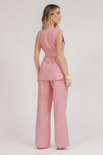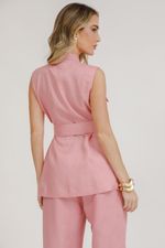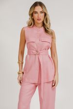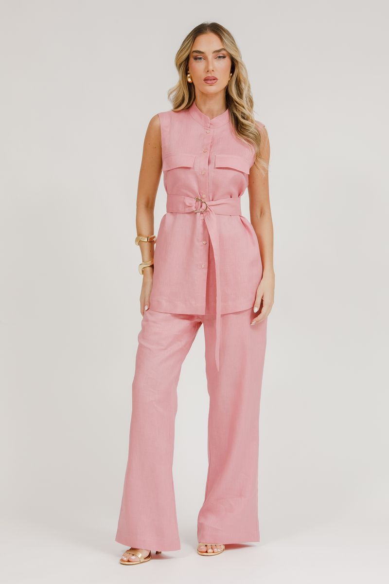 Camisa Cavada Linho Com Bolsos E Faixa - Rosa Seco
