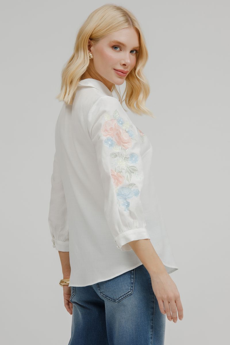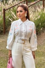 Camisa Feminina Com Bordado E Guipure.