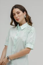 Camisa Feminina Manga Curta E Aplicação.