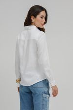 Camisa feminina em puro linho, com toque natural e sofisticado. Leve, fresca e atemporal perfeita para compor looks elegantes com leveza.