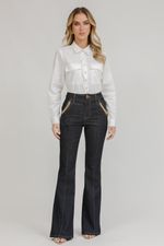 Camisa de tricoline com bolsos frontais e detalhes em metal. Elegância moderna com toque utilitário para looks versáteis e atuais.