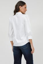 Camisa Feminina em Tricoline com mangas bufantes que trazem um toque de romantismo e elegância ao visual. Detalhes sofisticados com botões joias realçam o charme desta peça versátil, perfeita para compor looks delicados e modernos.