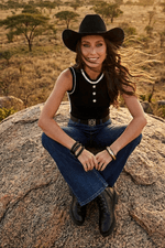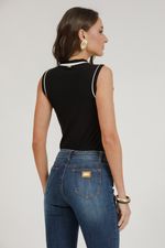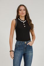 Regata de malha canelada com vivos e botões. Design moderno que valoriza a silhueta, perfeita para compor looks versáteis e atuais.