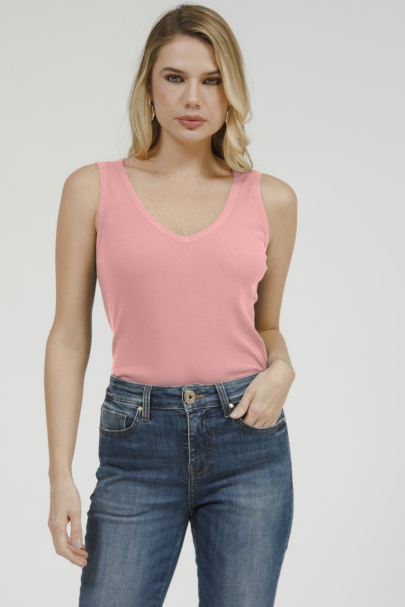 Regata Malha Canelada Decote V.