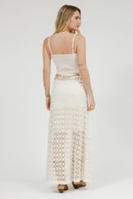 Um conjunto para impressionar: o SET une a elegância da saia longa de sarja com detalhe em renda vazada ao charme do top estruturado com pedraria delicada na alça. O elástico nas costas garante conforto ao vestir, enquanto o zíper lateral traz praticidade e acabamento refinado. Uma produção sofisticada e feminina para ocasiões especiais que pedem presença e estilo.