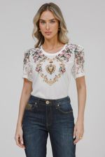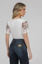 T-shirt Crepe E Malha E Renda Floral.