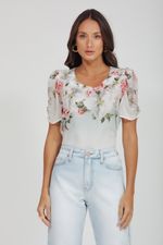 T-Shirt Crepe E Malha Estampa Floral.
