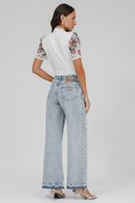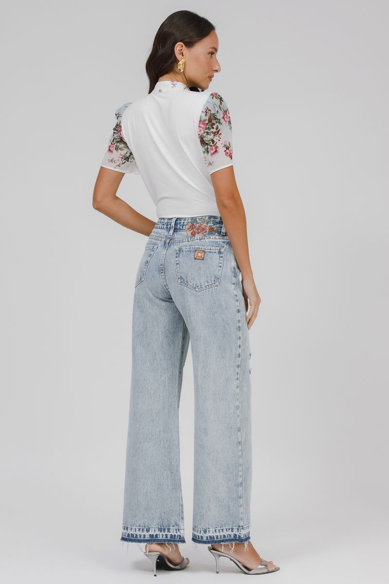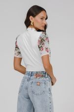 T-shirt Crepe E Malha Floral Com Botões.