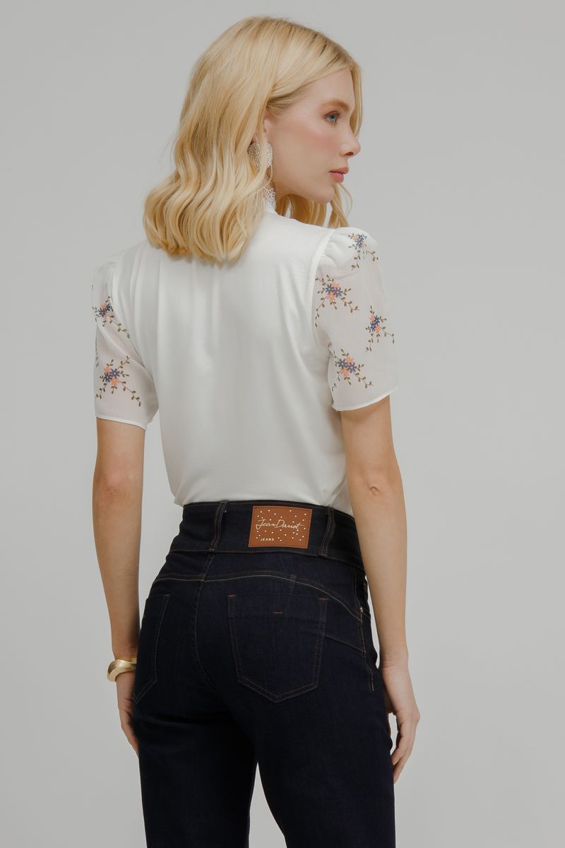 T-shirt Crepe E Malha Floral Com Botões.