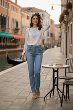 Elegante e cheia de personalidade, essa t-shirt de manga longa combina a leveza do crepe na frente com o conforto da malha nas costas. A estampa Paisley, com seus arabescos clássicos e fluidos, traz um toque artístico e atemporal à peça, perfeita para compor looks sofisticados e descomplicados.