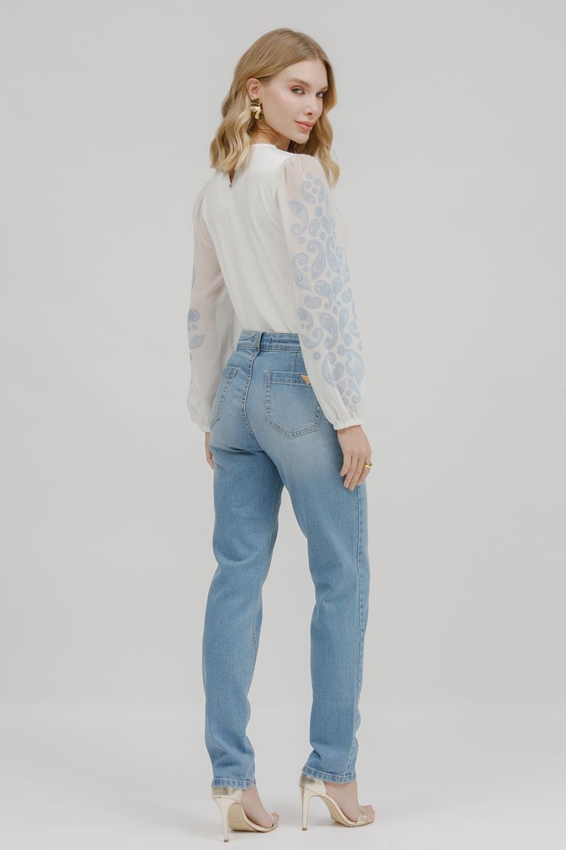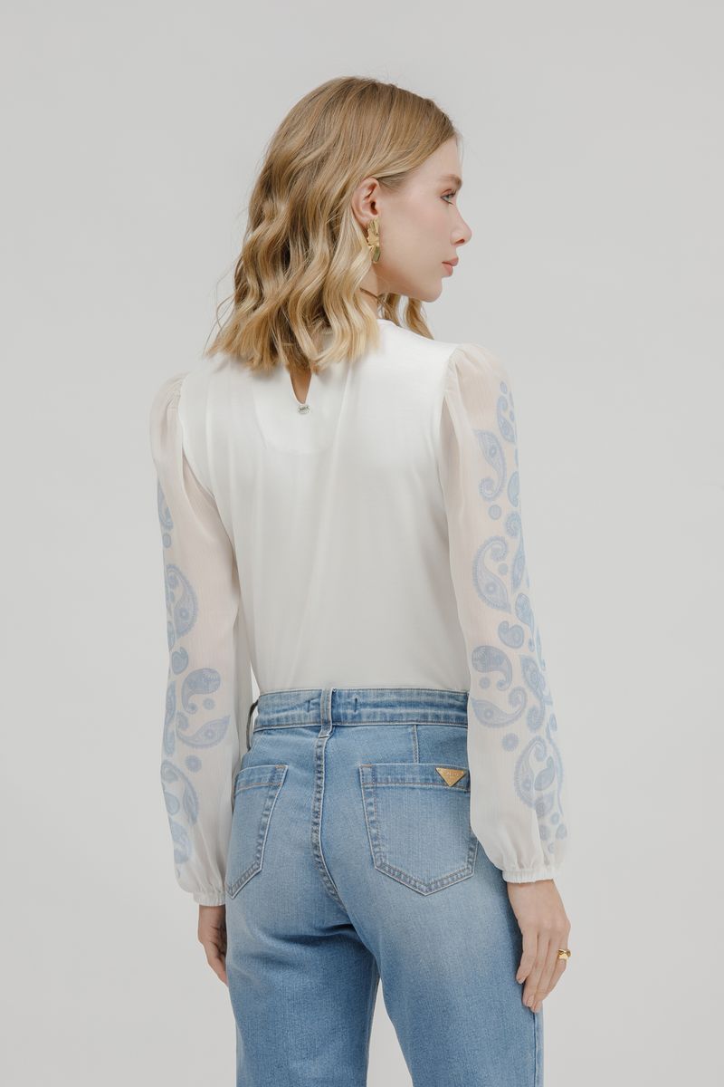 T-Shirt Crepe Malha Paisley Manga Longa.