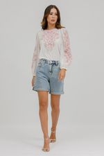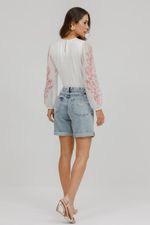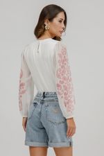 T-Shirt Crepe Malha Paisley Manga Longa.