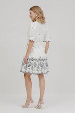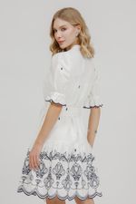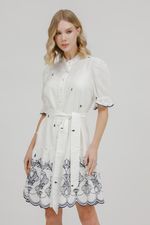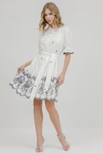 Vestido Curto Babado Bordado Com Faixa.