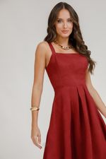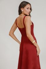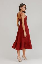 Vestido Midi Alça Jacquard Com Babados - Bordo