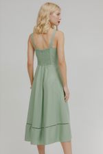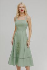 Vestido Midi Alça Linho Com Bordado.