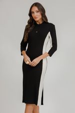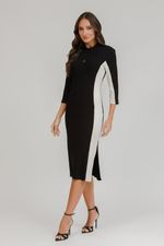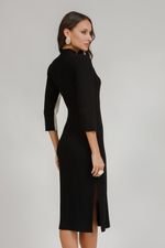 Vestido Midi De Malha Com Manga 3/4 - Preto