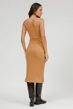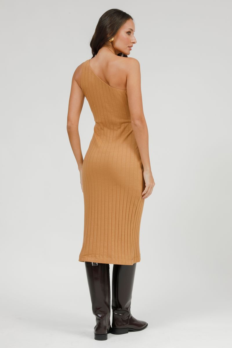Vestido Midi Malha Assimétrico Com Metal.